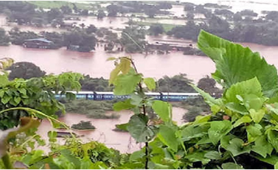 मुंबई से सटे बदलापुर एवं बांगनी स्टेशन के बीच जलभराव की वजह से तालकोड़ी गांव में महालक्ष्मी एक्सप्रेस अटकी हुई है, जिसमें दो हजार से ज्यादा यात्री फंसे हुए हैं। एनडीआरएफ की दो टीम यानी राहत बल के 80 लोग यात्रियों को बचाने में जुटे हैं। इस दौरान छह बोट के जरिए रेस्क्यू ऑपरेशन चलाया जा रहा है। साथ ही नेवी के तीन हेलीकॉप्टर भी यात्रियों को सुरक्षित निकालने के लिए मौके पर पहुंचे हैं। ठाकुरली से लेकर कल्याण, बदलापुर, बांगणी आदि स्टेशनों पर रेलवे पटरी पूरी तरह पानी में डूबी हुई है, इसलिए यहां मध्य रेलवे की सेवा खंडित हो गई है। पश्चिम रेलवे एवं हार्बर रेलवे की सेवा में धीमी गति से चल रही है। सभी स्टेशनों पर यात्रियों की भीड़ लगी हुई है।