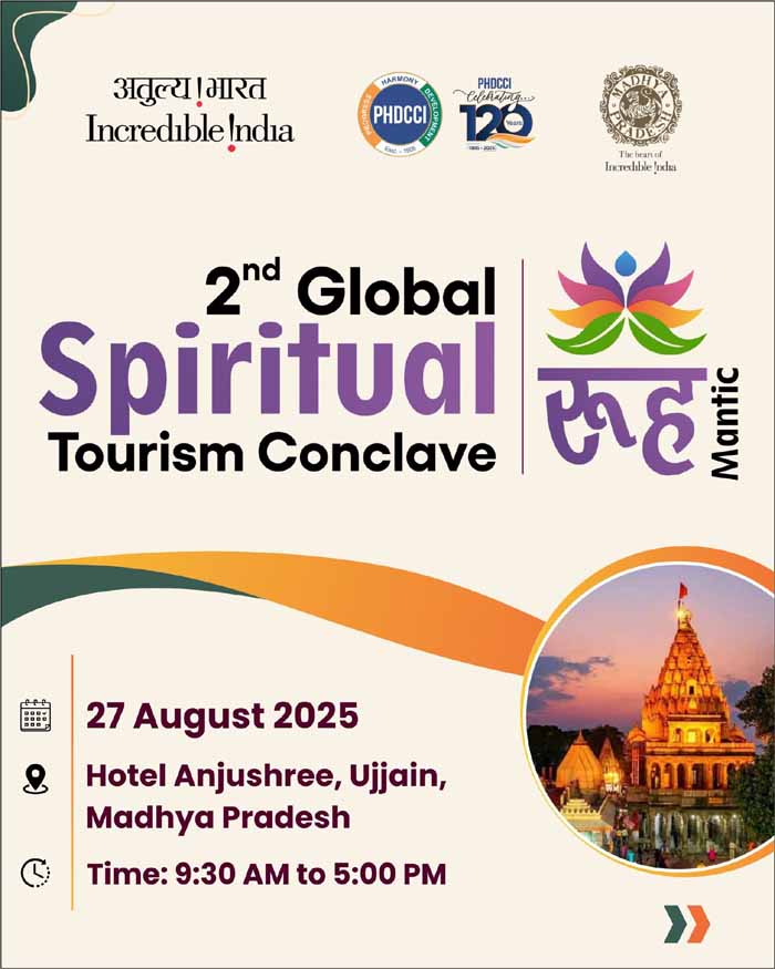 यह सम्मेलन पीएचडी चैंबर ऑफ कॉमर्स एंड इंडस्ट्री (पीएचडीसीसीआई) द्वारा पर्यटन मंत्रालय और मध्यप्रदेश पर्यटन बोर्ड के सहयोग से आयोजित किया जा रहा है। पर्यटन मंत्रालय के अपर सचिव एवं महानिदेशक श्री सुमन बिल्ला और मध्यप्रदेश के प्रमुख सचिव पर्यटन श्री शिव शेखर शुक्ला सहित वरिष्ठ अधिकारी सम्मेलन को संबोधित करेंगे।
