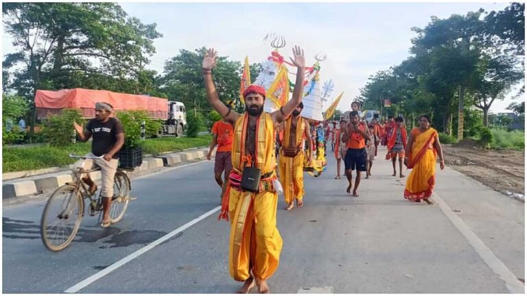 वैशाली जिले के भगवानपुर विशुनपुर बांदे गांव के 60 कांवरिये 331 फीट लंबी कांवड़ लेकर बाबा गरीबनाथ मंदिर की ओर रवाना हुए हैं। सभी कांवरियों ने शुक्रवार सुबह चार बजे सारण जिले के पहलेजा घाट से उत्तरवाहिनी गंगा जल लेकर मुजफ्फरपुर स्थित बाबा गरीबनाथ मंदिर के लिए प्रस्थान किया। पहलेजा घाट से बाबा गरीबनाथ मंदिर की दूरी लगभग 70 किलोमीटर है। इस विशालकाय कांवड़ का निर्माण महेश गुप्ता के मार्गदर्शन में हुआ है, जो पिछले पांच वर्षों से लगातार इस आयोजन की देखरेख कर रहे हैं।