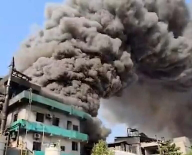 गुजरात के भरूच के नजदीक आज कलेश्वर के जीआईडीसी में एक केमिकल कंपनी में आग लग गई। घटना की जानकारी मिलते ही अग्निशमन दल मौके पर पहुंची। आग पर काबू पाने के प्रयास जारी हैं। वीडियो में देखा जा सकता है कि आग की लपटें और धुएं का गुबार आसमान में आसमान को छूने लगा।