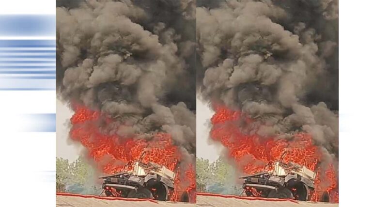 सकरी नेशनल हाईवे पर खड़े ट्रेलर में लगी भीषण आग, मचा हड़कंप