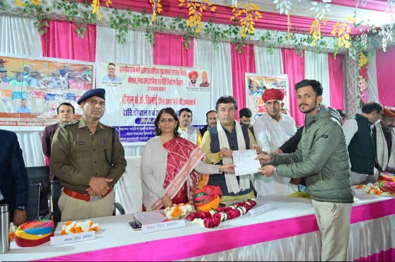 कार्यक्रम में ग्रामीण विकास एवं पंचायतीराज विभाग द्वारा 4 स्वामित्व कार्ड, 2 जन्म प्रमाण पत्र व 1 विवाह प्रमाण पत्र संबंधित को सौपा गया। महिला अधिकारिता विभाग तथा चिकित्सा एवं स्वास्थ्य विभाग द्वारा लाडो योजना के लाभार्थियों का स्वागत एवं अभिनन्दन किया गया। वही आयुष्मान कार्ड के लाभार्थियों को आयुष्मान कार्ड वितरित किया गया। महिला एवं बाल विकास विभाग द्वारा लाभार्थियों की गोद भराई की गई। पशुपालन विभाग द्वारा मुख्यमंत्री मंगला पशु बीमा योजना की पॉलिसी का वितरण किया गया। उद्यानिकी विभाग द्वारा विभिन्न योजनाओं में अनुदान की वित्तीय एवं प्रशासनिक स्वीकृति के दस्तावेज प्रदान किए गए। सामाजिक न्याय एवं अधिकारिता विभाग द्वारा मुख्यमंत्री कन्यादान योजना के तहत 31 हजार का चैक पंकुदेवी भगाराम मेघवाल को व मुद्रा ऋण योजना के तहत अनाराम हिरागर को 50 हजार रूपये अनुदान का चैक प्रदान किया गया।