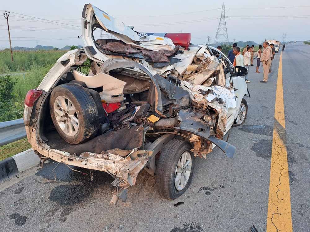 टक्कर इतनी जबरदस्त थी कि कार के परखच्चे उड़ गए। राहगीरों ने घटना की सूचना पुलिस को दी। मौके पर पहुंची पुलिस ने कार की स्थिति देखकर हाइड्रा मंगाई और कार की बाडी को काटकर लोगों को बाहर निकाला।