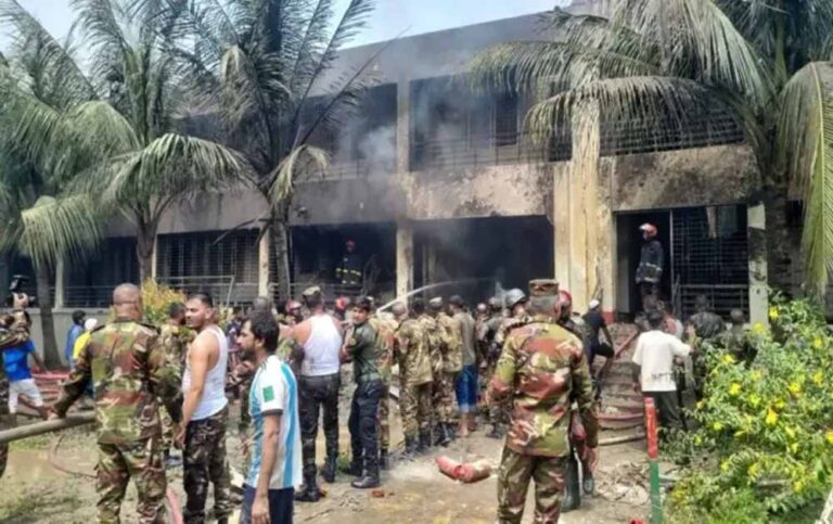 बांग्लादेश सेना के जनसंपर्क कार्यालय ने बताया कि वायुसेना का प्रशिक्षण विमान F-7 BGI ढाका के उत्तरा क्षेत्र के दियाबारी इलाके में माइलस्टोन स्कूल और कॉलेज परिसर में गिर गया। अग्निशमन अधिकारी लीमा खान ने बताया कि हादसे में एक व्यक्ति की मौत हो गई और चार अन्य घायल हो गए।