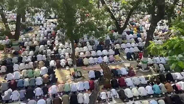 अजमेर शहर के केसरगंज स्थित ईदगाह में शनिवार सुबह ईद उल अजहा (बकरीद) की नमाज शांतिपूर्ण और धार्मिक उत्साह के साथ अदा की गई। सुबह से ही नमाजियों का ईदगाह में पहुंचना शुरू हो गया था और हजारों की संख्या में लोगों ने सामूहिक नमाज में हिस्सा लिया। नमाज के दौरान देश में अमन, भाईचारे और खुशहाली के लिए विशेष दुआ की गई। नमाज के बाद लोगों ने एक-दूसरे को गले लगाकर ईद की मुबारकबाद दी और आपसी सौहार्द का संदेश दिया।