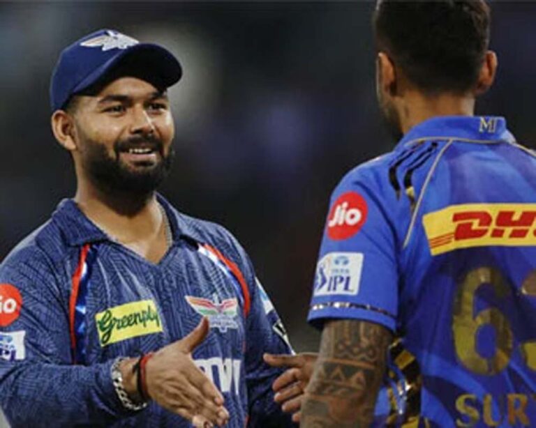 मुंबई इंडियंस के खिलाफ जीत दर्ज करने वाली लखनऊ सुपर जायंट्स की टीम के कप्तान ऋषभ पंत पर मोटा जुर्माना बीसीसीआई ने ठोका है। इसके अलावा लखनऊ की टीम के गेंदबाज दिग्वेश सिंह राठी भी फाइन लगा है। स्लो ओवर रेट के लिए लखनऊ सुपर जायंट्स को मैच के दौरान भी सजा मिली थी और अब कप्तान ऋषभ पंत पर 12 लाख रुपये का फाइन लगा है। वहीं, दिग्वेश राठी पर मैच फीस का 50 फीसदी जुर्माना लगा है। उन्होंने गेंदबाजी के दौरान बल्लेबाज को आउट करने के बाद अभद्र इशारा किया था। पिछले मैच में भी उनको इसी करतूत की वजह से सजा मिली थी। वे विकेट लेने के बाद बल्लेबाज की तरफ ऐसे इशारा करते हैं, जैसे उनका हिसाब-किताब निपटा रहे हैं।