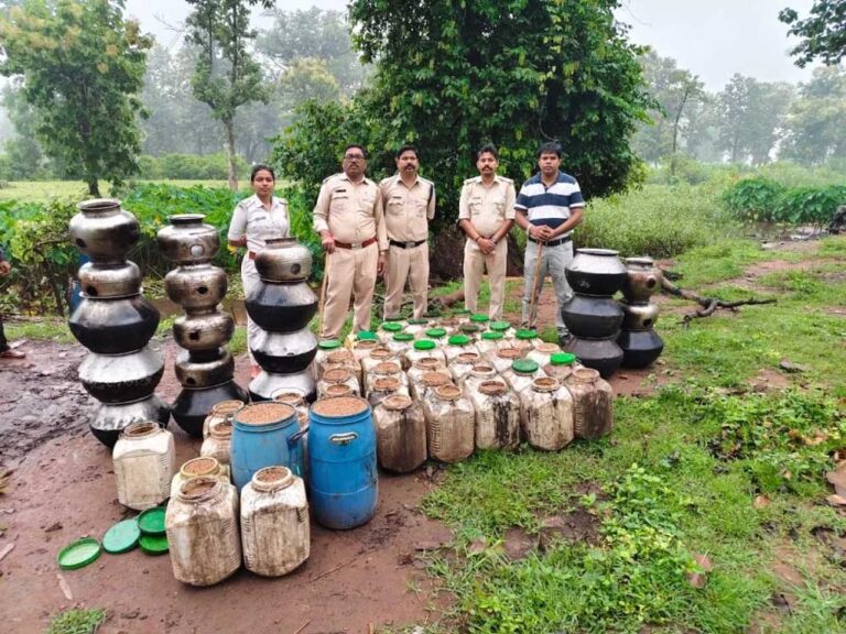 कार्रवाई के दौरान 105 बल्क लीटर महुआ शराब (कीमत लगभग 10,500 रुपये) जब्त की गई, वहीं 840 किलोग्राम महुआ लाहन (कीमत लगभग 42,000 रुपये) मौके पर नष्ट किया गया.