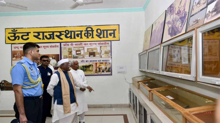राज्यपाल हरिभाऊ बागडे ने मंगलवार को बीकानेर स्थित भारतीय कृषि अनुसंधान परिषद के उष्ट्र अनुसंधान केन्द्र का अवलोकन किया। राज्यपाल ने यहां के उष्ट्र संग्रहालय का भ्रमण किया। यहां ऊँटों की विविध नस्लों, ऊँटों के बहुआयामी उपयोग, ऐतिहासिक परिप्रेक्ष्य में ऊँटों के योगदान, उष्ट्र व्यवहार तथा लक्षण, उष्ट्र दुग्ध तथा उष्ट्र पर्यटन संबद्ध गतिविधियों की सामग्री का अवलोकन किया। श्री बागडे ने ऊँट के बाल, खाल व हड्डी से बने विभिन्न उत्पादों को देखा। इस दौरान राज्यपाल ने ऊंटनी के दूध से बनी लस्सी का स्वाद भी चखा। उन्होंने केन्द्र द्वारा ऊँटनी के दूध पाउडर की सराहना की। राज्यपाल ने उष्ट्र सवारी स्थल का भ्रमण किया तथा उष्ट्र पालकों से संवाद भी किया।