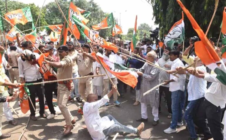 कांग्रेस दफ्तर पहुंचने के बाद कांग्रेस और बीजेपी के कार्यकर्ता आपस में भिड़ गए। फिर मार्च में शामिल भाजपा कार्यकर्ता सदाकत आश्रम में ही घुस गए। इस पर कांग्रेस वर्कर भी उग्र हो गए। दोनों ओर से लाठी और डंडे चले हैं। सदाकत आश्रम में खड़ी गाड़ियों के शीशे तोड़ दिए गए हैं। झंडे वाले डंडे से मारपीट में दोनों और से कई लोग घायल बताए जा रहे हैं। पटना जिला के पूर्व कांग्रेस अध्यक्ष परवेज अहमद ने आरोप लगाया कि पुलिस भाजपा वालों के साथ मिली हुई थी। मंत्री के बॉडीगार्ड भी मारपीट कर रहे थे।
