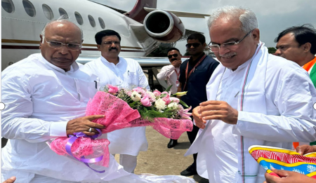 रायपुर (mediasaheb.com)| मुख्यमंत्री श्री भूपेश बघेल ने नेता प्रतिपक्ष राज्यसभा श्री मल्लिकार्जुन खड़गे का रायपुर एयरपोर्ट पहुंचने पर किया आत्मीय स्वागत।