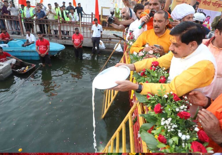 मुख्यमंत्री डॉ. मोहन यादव ने वाल्मिकी धाम में अनंत विभूषित 1008 स्वामी सोहन दास जी महाराज की समाधि पर पुष्प अर्पित किये और मंदिर मे दर्शन किये। उन्होंने संत-जनों से सौजन्य भेंट की और यात्रा में शामिल श्रद्धालुओं से भी मिले। मुख्यमंत्री ने इस दौरान कहा कि आज का दिन अत्यंत शुभ दिन है। माँ क्षिप्रा से प्रार्थना है कि वे हमारे द्वारा किए गए पूजन अर्चन और परिक्रमा यात्रा को सफल बनाए और सबका कल्याण करें। मुख्यमंत्री डॉ. यादव ने अपनी ओर से सभी को गंगा दशहरा और विश्व पर्यावरण दिवस की शुभकामनाएं दीं।