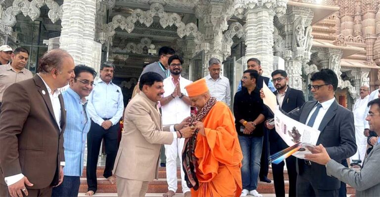मुख्यमंत्री डॉ. मोहन यादव ने रविवार को दुबई प्रवास के दौरान बीएपीएस हिन्दू मंदिर में दर्शन किये। इस दौरान मंदिर के प्रमुख महंत पूज्य ब्रहृविहारी स्वामी ने मुख्यमंत्री डॉ. यादव को मंदिर परिसर का भ्रमण कराया और मंदिर की विशेषताओं से अवगत कराया। इस अवसर पर मध्यप्रदेश के अधिकारियों की टीम भी उपस्थित रही।
