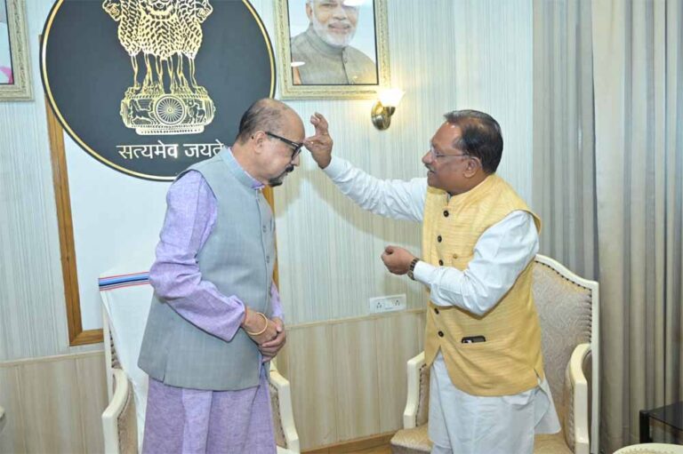 राज्यपाल रमेन डेका से आज राजभवन में मुख्यमंत्री विष्णुदेव साय ने भेंट कर होली की शुभकामनाएं दीॅ और राज्य हित से जुड़े विषयों पर चर्चा की। श्री डेका ने भी उन्हें होली की शुभकामनाएं दीं। राज्यपाल डेका को मुख्यमंत्री साय ने राजकीय गमछा पहनाकर सम्मानित किया।