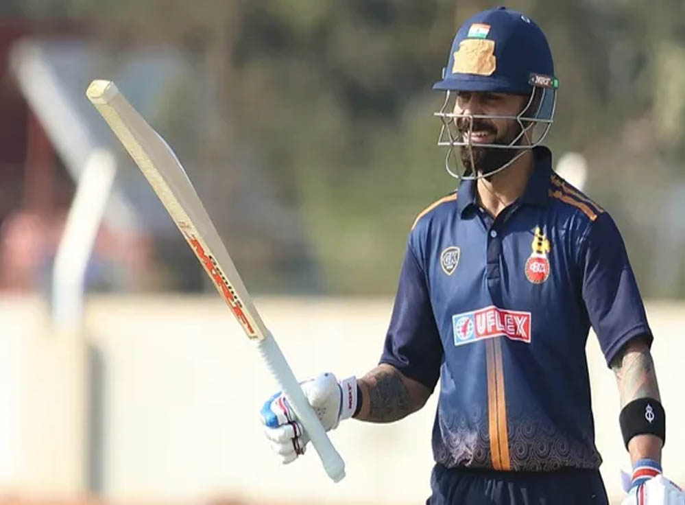 भारत के दिग्गज बल्लेबाज विराट कोहली List-A क्रिकेट में इतिहास रचने के करीब खड़े हुए हैं. विराट कोहली जल्द ही List-A क्रिकेट में महान बल्लेबाज सचिन तेंदुलकर के शतकों का वर्ल्ड रिकॉर्ड तोड़ देंगे. विराट कोहली ने बुधवार को विजय हजारे ट्रॉफी में 15 साल बाद अपना कोई मैच खेला और धमाकेदार अंदाज में शतक जड़ दिया. विराट कोहली ने आंध्र के खिलाफ बुधवार को बेंगलुरु में खेले गए विजय हजारे ट्रॉफी के मैच में शतक जड़ते हुए 101 गेंद पर 131 रन बनाए.