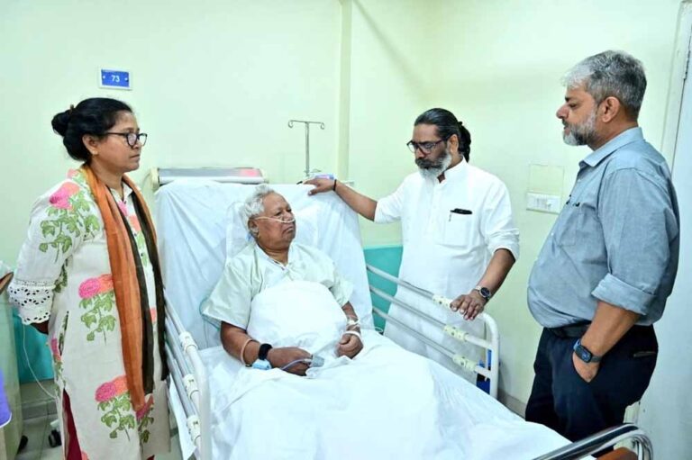 सीएम हेमंत ने इलाजरत लोकसभा के पूर्व उपाध्यक्ष कड़िया मुंडा से मुलाकात कर उनका कुशलक्षेम जाना तथा चिकित्सकों से उनके स्वास्थ्य की जानकारी ली। मुख्यमंत्री ने कड़िया मुंडा के शीघ्र स्वास्थ्य लाभ की कामना की। वहीं, बता दें कि भारतीय जनता पार्टी के प्रदेश अध्यक्ष और झारखंड विधानसभा में नेता प्रतिपक्ष बाबूलाल मरांडी भी मेडिका अस्पताल पहुंचकर मुंडा का कुशलक्षेम जान चुके हैं। मरांडी के साथ अस्पताल जाने वालों में भाजपा के प्रदेश संगठन महामंत्री कर्मवीर सिंह भी शामिल थे। सिंह ने भी मुंडा के स्वास्थ्य के बारे में जानकारी ली और उनके जल्द स्वस्थ होने की कामना की।