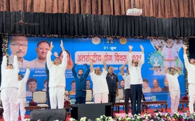 अंतर्राष्ट्रीय योग दिवस पर पूरे प्रदेश में कार्यक्रम का आयोजन किया गया. इस अवसर पर राज्यपाल रमेन डेका ने जहां इंदिरा गांधी कृषि विश्वविद्यालय के कृषि मण्डपम में आयोजित कार्यक्रम में शामिल हुए. वहीं उप मुख्यमंत्री अरुण साव, उप मुख्यमंत्री विजय शर्मा सहित तमाम साय मंत्रिमंडल के तमाम सदस्यों, सांसद, विधायक और तमाम जनप्रतिनिधियों ने अधिकारियों-कर्मचारियों, छात्र-छात्राओं के साथ योगाभ्यास किया.