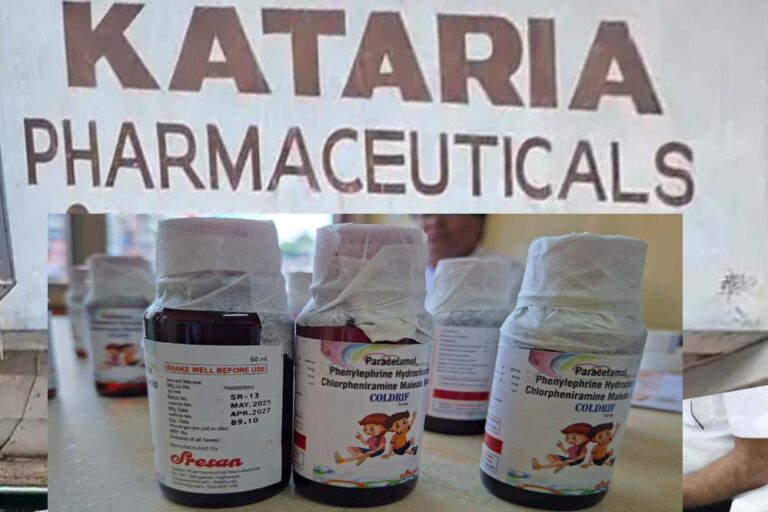 जबलपुर के कटारिया फार्मास्यूटिकल ऑफिस से ही छिंदवाड़ा का बड़ा लॉट कोल्ड्रिफ सिरप का भेजा गया था। जांच रिपोर्ट आने के बाद गंभीर अनियमितताएं सामने आईं। जिसपर खाद्य एवं औषधि विभाग ने लाइसेंस निरस्त कर दिया है। इसके बाद पुलिस-प्रशासन ने कंपनी और उसके डीलर के खिलाफ कार्रवाई तेज कर दी है। दो दिन पहले ही खाद्य एवं औषधि विभाग ने जांच के दौरान पाया था कि नोदरा ब्रिज स्थित कटारिया फार्मास्यूटिकल के ऑफिस-गोदाम में जहां पर दवाओं का स्टॉक रखा जाता था, उसकी अनुमति नहीं थी। इतना ही नहीं कटारिया फार्मास्यूटिकल के संचालक ने दुकान का लाइसेंस और अन्य दस्तावेज प्रस्तुत किए लेकिन गोदाम से जुड़े उनके पास कोई दस्तावेज नहीं थे।