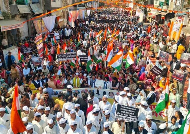 भागीरथपुरा में दूषित पानी से हुई मौतों के बाद कांग्रेस ताकत दिखाने के लिए आज फिर से सड़क पर उतरी है। आज शहर में न्याय यात्रा निकाली जा रही है। इसमें दिग्विजय सिंह, सज्जन सिंह वर्मा मीनाक्षी नटराजन, उमंग सिंघार सहित प्रदेश के अलग-अलग क्षेत्रों से कांग्रेस विधायकों सहित अन्य बड़े नेता पहुंचे हैं। इस दौरान प्रदेश कांग्रेस अध्यक्ष जीतू पटवारी के इंतजार में यात्रा रूकी रही।