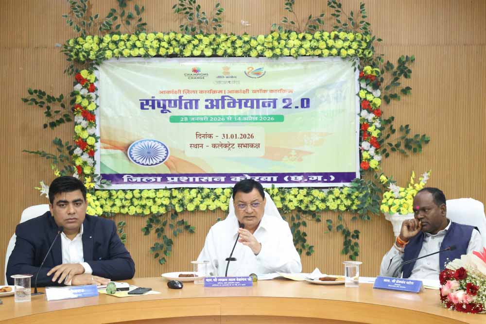 छत्तीसगढ़ शासन के वाणिज्य, उद्योग, आबकारी, सार्वजनिक उपक्रम एवं श्रम मंत्री लखनलाल देवांगन की अध्यक्षता में आज कलेक्ट्रेट सभाकक्ष में नीति आयोग के आकांक्षी जिला कार्यक्रम अंतर्गत संपूर्णता अभियान 2.0 का औपचारिक शुभारंभ किया गया। इस अवसर पर मंत्री देवांगन ने कहा कि विगत वर्ष संपूर्णता अभियान 1.0 के तहत निर्धारित संकेतकों पर योजनाबद्ध तरीके से कार्य कर महत्वपूर्ण उपलब्धियाँ हासिल की गईं। प्रधानमंत्री नरेंद्र मोदी के दिशा-निर्देशन में नीति आयोग द्वारा कोरबा जिले को विकास की तेज राह पर आगे बढ़ाने के उद्देश्य से संपूर्णता अभियान 2.0 लागू किया गया है। उन्होंने कहा कि सरपंचों सहित सभी जनप्रतिनिधियों की सहभागिता और विभागीय अधिकारियों के समन्वय से आकांक्षी जिले के लिए निर्धारित लक्ष्यों को प्राप्त करते हुए कोरबा को विकास व प्रगति के पथ पर आगे ले जाना उनकी प्राथमिकता है। मंत्री देवांगन ने कहा कि इस अभियान के सभी मानकों को प्राप्त करने में सभी की सक्रिय भागीदारी आवश्यक है। योजनाओं का सफल क्रियान्वयन और उनका लाभ पात्र व्यक्तियों तक सुनिश्चित रूप से पहुँचे, इसके लिए समर्पित भाव से कार्य करना जरूरी है।