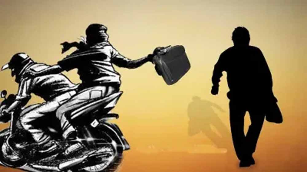 जानकारी के अनुसार शराब कर्मचारी हर्षित, गौरव और रौनक तीनों मानपुर निवासी शुक्रवार दोपहर रुपये निकालने के लिए बैंक में गए थे। तीनों ने बैंक से 10 लाख रुपये निकाले तभी दो बाइक सवार आए और उनके साथ ही रुपयों से भरा बैग छीन कर फरार हो गए।