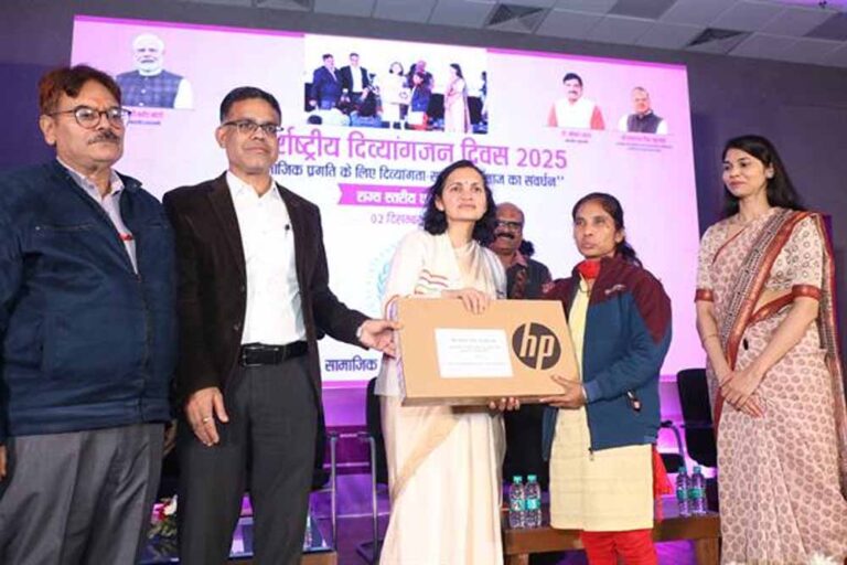 विश्व दिव्यांग दिवस के अवसर पर प्रमुख सचिव सामाजिक न्याय एवं दिव्यांगजन सशक्तिकरण श्रीमती सोनाली वायंगणकर के मुख्य आतिथ्य में संचालनालय सभागार में कार्यक्रम का आयोजन किया गया, जिसमें दिव्यांगजनों के अधिकार, समानता और सशक्तिकरण के लिए विभाग की प्रतिबद्धता को रेखांकित किया गया। इस अवसर पर आयुक्त नि:शक्तजन डॉ. अजय खेमरिया भी उपस्थित थे।