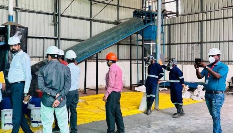 रासायनिक कचरे को भस्मक में डालने से पहले छोटे-छोटे पैकेट बनाए जा रहे हैं।