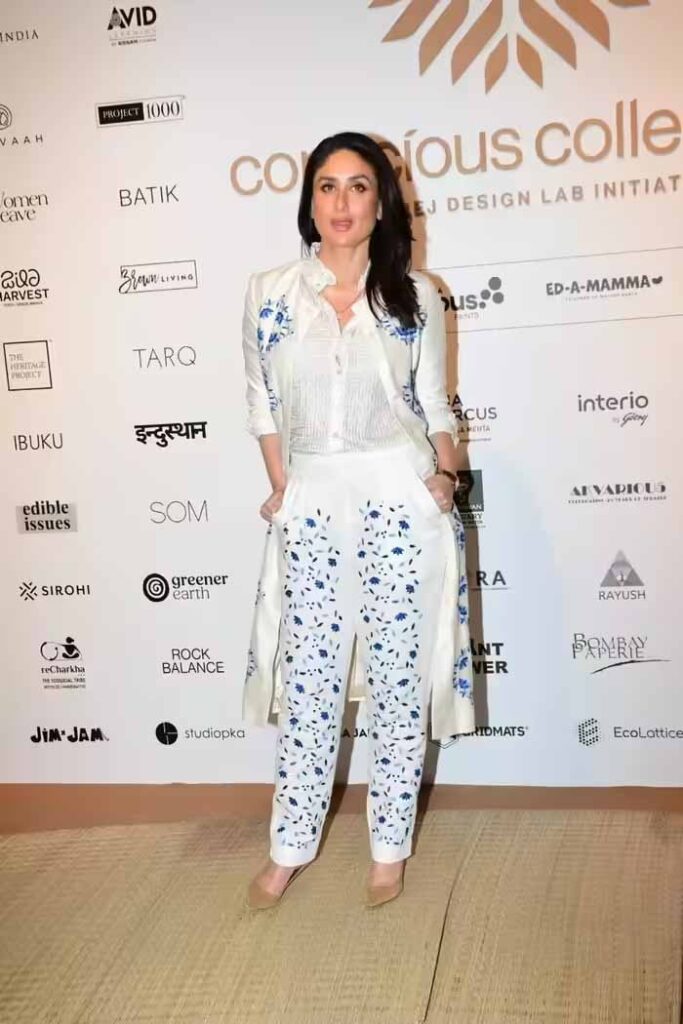 शर्ट के साथ करीना ने हाई-वेस्ट पैंट्स पहनी थीं, जो उनके पूरे लुक को बैलेंस कर रही थीं। इन पैंट्स पर छोटे-छोटे नीले फूलों का प्रिंट था, जो वाइट शर्ट के साथ खूबसूरत लग रहा था। कैमरे के सामने उन्होंने हाथ जेब में डालकर कॉन्फिडेंट पोज दिए, जिससे उनका स्वैग साफ नजर आया।