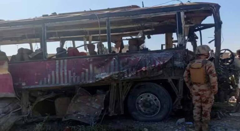 पाकिस्तान के अशांत बलूचिस्तान के नौशकी में सुरक्षा बलों को लेकर जा रही बस में विस्फोट हो गया। हमले में पांच सैन्य अधिकारियों की मौत हो गई। जबकि 12 सैन्यकर्मी घायल हो गए। मीडिया रिपोर्ट के मुताबिक बलूच लिबरेशन आर्मी ने हमले की जिम्मेदारी ली है। वहीं बलूचिस्तान सरकार ने हमले की निंदा की है।
