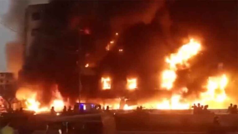 पाकिस्तान के आर्थिक केंद्र कराची में शनिवार रात एक बहुमंजिला शॉपिंग मॉल में भीषण आग लगने से हड़कंप मच गया। इस दर्दनाक हादसे में अब तक कम से कम 3 लोगों की जान जाने की पुष्टि हुई है जबकि करीब 12 लोग गंभीर रूप से घायल हैं। आग इतनी भयानक थी कि इसने मॉल की दर्जनों दुकानों को अपनी चपेट में ले लिया और करोड़ों के नुकसान की आशंका जताई जा रही है।