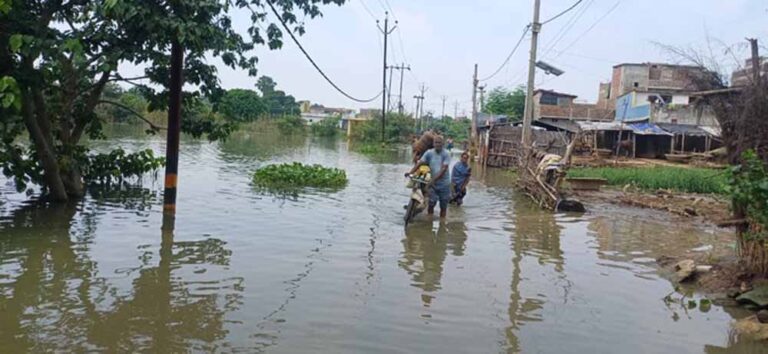 पानी में डूबे इलाकों को बाढ़ प्रभावित क्षेत्र घोषित करने की मांग