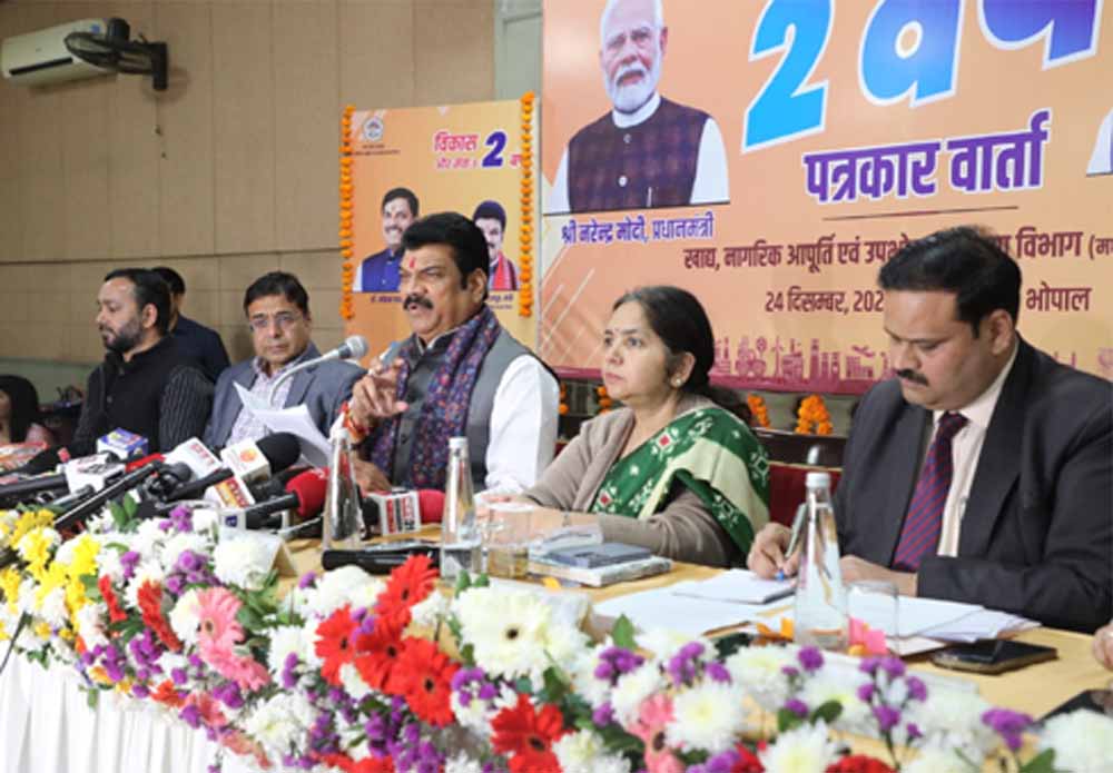 खाद्य, नागरिक आपूर्ति एवं उपभोक्ता संरक्षण मंत्री श्री गोविंद सिंह राजपूत ने कहा है कि मुख्यमंत्री डॉ. मोहन यादव के नेतृत्व में मध्यप्रदेश शासन के खाद्य, नागरिक आपूर्ति एवं उपभोक्ता संरक्षण विभाग द्वारा विगत दो वर्षों में सार्वजनिक वितरण प्रणाली, उपभोक्ता संरक्षण, किसान हित तथा गैस आपूर्ति के क्षेत्र में कई महत्वपूर्ण उपलब्धियाँ अर्जित की गई हैं। विभाग द्वारा योजनाओं के क्रियान्वयन में पारदर्शिता एवं तकनीक आधारित निगरानी व्यवस्था को प्राथमिकता दी गई है। खाद्य मंत्री श्री राजपूत राजधानी में विभाग की 2 वर्ष की उपलब्धियों को लेकर पत्रकारों से चर्चा कर रहे थे।