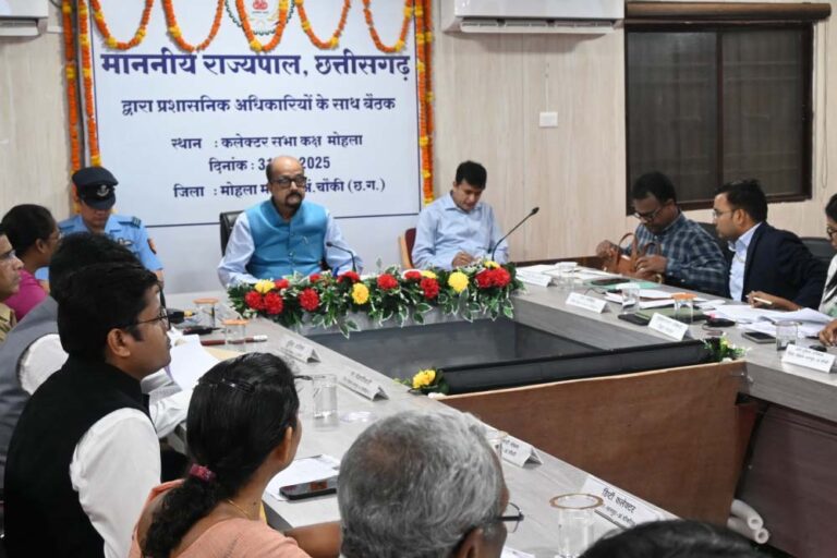 राज्यपाल श्री रमेन डेका आज जिला मोहला मानपुर अंबागढ़ जिले के प्रवास पर रहे। छत्तीसगढ़ राज्य निर्माण के बाद पहली बार जिला मोहला मानपुर अंबागढ़ चौकी जिले की सीमा क्षेत्र में पहली बार राज्यपाल का आगमन हुआ। यह पहला मौका था, जब प्रदेश के राज्यपाल जिले की सीमा में पहुंचे। राज्यपाल ने यहां जिला कार्यालय के सभाकक्ष में प्रशासनिक अधिकारियों की बैठक लेकर जिले में चलाये जा रहे महत्वपूर्ण कार्यक्रमों, योजनाओं की जानकारी ली। राज्यपाल श्री रमेन डेका ने कहा कि अधिकारीगण प्रशासनिक उत्तरदायित्व और जवाबदेही के साथ आम जनता के प्रति अपनी जिम्मेदारी को समझें। जनता से संवाद करें और उसकी समस्या को सुनकर सुलझाएं।