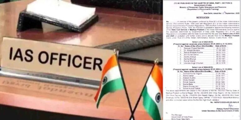 मध्य प्रदेश में राज्य प्रशासनिक सेवा (SAS) के 16 अफसरों को भारतीय प्रशासनिक सेवा (IAS) में प्रमोशन दिया गया है। केंद्रीय कार्मिक मंत्रालय ने वर्ष 2023 और 2024 में उपलब्ध IAS पदों के लिए यह निर्णय लिया है। इसका नोटिफिकेशन सोमवार को जारी किया गया। वर्ष 2023 के आठ और 2024 के आठ अधिकारियों को आईएएस अवॉर्ड हुआ है। हालांकि इस आदेश के साथ ही यह भी शर्त जोड़ी गई है कि यह नियुक्तियां मध्य प्रदेश सरकार बनाम कमल नागर और अन्य संबंधित प्रकरणों में जबलपुर हाईकोर्ट के अंतिम निर्णय पर निर्भर करेगी।