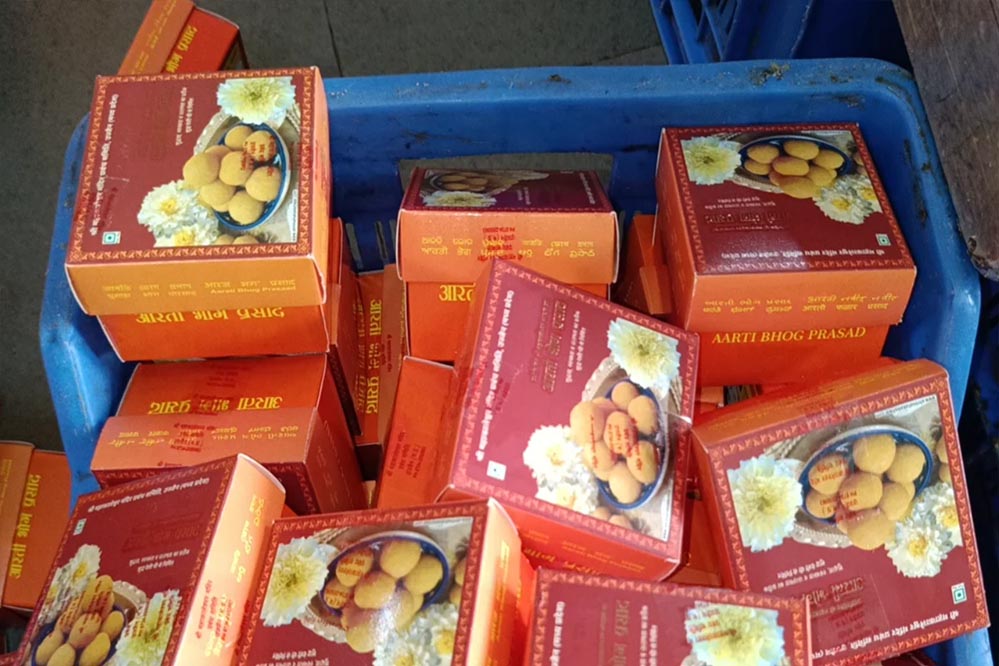 मंदिर में मिल रहे बेसन के लड्डू प्रसाद, श्री चिंतामण गणेश मंदिर मार्ग पर श्री महाकालेश्वर लड्डू प्रसाद यूनिट में बनाकर तैयार किए जाते हैं. जहां से प्रसाद मंदिरों के काउंटर तक पहुंचता है. मंदिर में मिलने वाले प्रसाद की कीमत 400रु किलो है. अभी 50रु, 100रु, 200रु और 400रु के अलग अलग पैकेट मिलते हैं. इसी तरह रागी के लड्डू भी मिलेंगे.