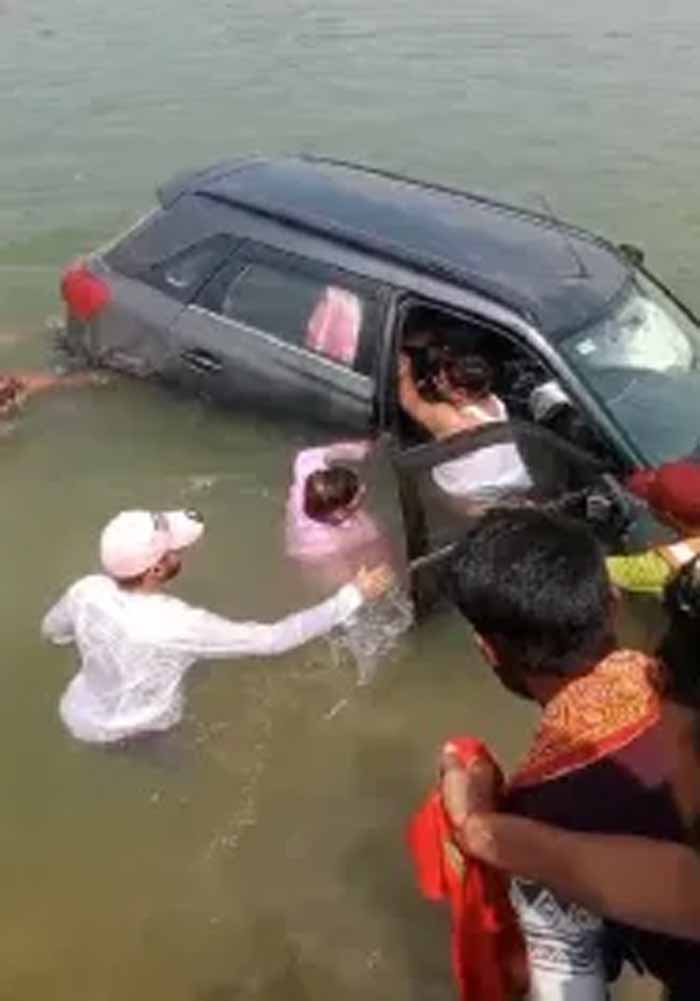 कार की टक्कर से डैम में गिरी कार