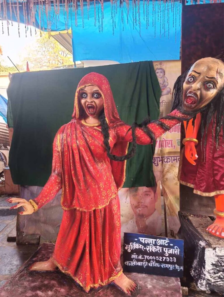राजधानी रायपुर में होली त्योहार की धूम देखने को मिल रही है. बाजारों में रौनक के साथ ही होलिका दहन की तैयारियां भी जोर-शोर से चल रही हैं. जगह-जगह होलिकाओं का अनोखा अंदाज भी दिख रहा है. इस बार शहर के प्रसिद्ध स्थल में से एक कालीबाड़ी चौक पर ‘स्त्री 2’ फिल्म की थीम पर आधारित होलिका की मूर्ति आकर्षण का केंद्र बनी हुई है. “ओ स्त्री कल आना” थीम के साथ मूर्ति के पास फिल्म के प्रसिद्ध कैरेक्टर ‘सरकटा’ की प्रतिमा भी बनाई गई है, जो लोगों को खासा आकर्षित कर रही है.