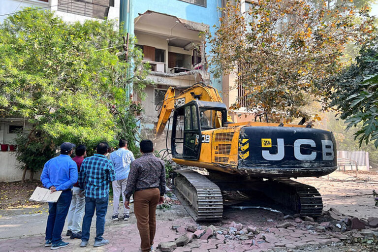 इंदौर के धार कोठी क्षेत्र में नगर निगम ने गुरुवार सुबह अवैध निर्माण हटाया। मौके पर पहुंचे अमले ने पहले तीन मंजिला बिल्डिंग पर बनाए गए अवैध पेंटा हाउस को तोड़ा, फिर तल मंजिल पर किए गए अवैध निर्माण को हटाया। एक माह पहले भवन मालिक को नगर निगम ने स्वेच्छता से अवैध निर्माण हटाने के लिए कहा था, लेकिन तय समय के बावजूद निर्माण नहीं तोड़ा गया, इसलिए गुरुवार सुबह रिमूवल गैंग ने मौके पर पहुंच कर निर्माण तोड़ दिया।