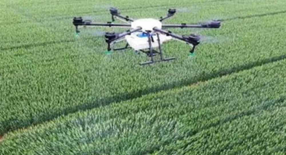 240 रुपये में एक एकड़ में ड्रोन से फसलों पर छिड़काव