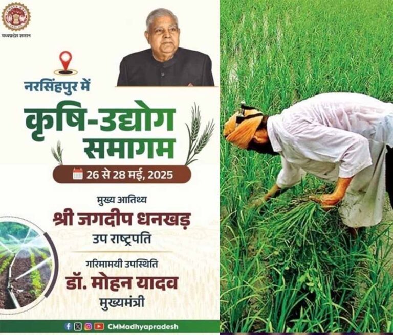 प्रदेश में वर्ष 2025 को उद्योग एवं रोजगार वर्ष के रूप में मनाया जा रहा है। इन्वेस्ट मध्यप्रदेश के अंतर्गत अनंत संभावनाओं के दृष्टिगत नरसिंहपुर में 26 मई को कृषि उद्योग समागम का आयोजन होगा। उपराष्ट्रपति जगदीप धनखड़ समागम का शुभारंभ करेंगे। कार्यक्रम में राज्यपाल मंगुभाई पटेल, मुख्यमंत्री डॉ. मोहन यादव सहित मंत्रीगण, सांसद, विधायक, जनप्रतिनिधि, अधिकारी, उद्योगपति, किसान, आमजन आदि मौजूद रहेंगे।