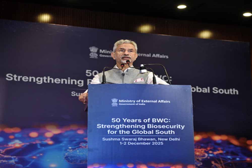 भारत के विदेश मंत्री एस जयशंकर बायोलॉजिकल वेपन्स कन्वेंशन (बीडब्लूसी) 50 कार्यक्रम में शामिल हुए। उन्होंने वैश्विक स्वास्थ्य संकट के दौरान भारत की भूमिका के बारे में बताया। विदेश मंत्री एस जयशंकर ने कहा कि भारत दुनिया के 60 फीसदी वैक्सीन बनाता है और 20 फीसदी जेनेरिक दवाइयां सप्लाई करता है। विदेश मंत्री एस जयशंकर ने कहा, "मैं आज आपसे कुछ बातों पर गौर करने की गुजारिश करता हूं, एक, भारत दुनिया की 60 फीसदी वैक्सीन बनाता है। दो, भारत दुनिया की 20 फीसदी से ज्यादा जेनेरिक दवाइयां सप्लाई करता है, और अफ्रीका की 60 फीसदी जेनेरिक दवाइयां भारत से आती हैं। तीन, भारत में लगभग 11,000 बायोटेक स्टार्टअप हैं, जो 2014 में सिर्फ 50 थे।