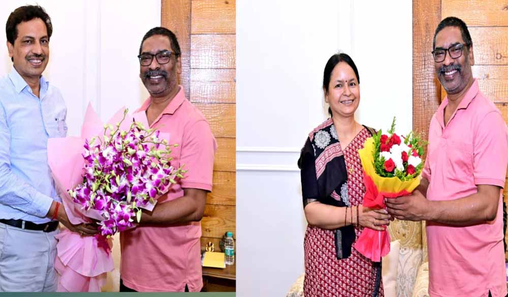 पहली मुलाकात झारखंड की राज्य निर्वाचन आयुक्त अलका तिवारी ने मुख्यमंत्री से की, जिसमें दोनों के बीच सौहार्दपूर्ण चर्चा हुई। यह मुलाकात एक पारंपरिक शिष्टाचार भेंट थी, जिसमें चुनाव संबंधी प्रशासनिक विषयों पर चर्चा हुई। वहीं, दूसरी शिष्टाचार मुलाकात विकास आयुक्त, झारखंड अजय कुमार सिंह ने मुख्यमंत्री से की। इस अवसर पर सिंह ने मुख्यमंत्री को विभिन्न विकास परियोजनाओं और योजनाओं की वर्तमान स्थिति से अवगत कराया।