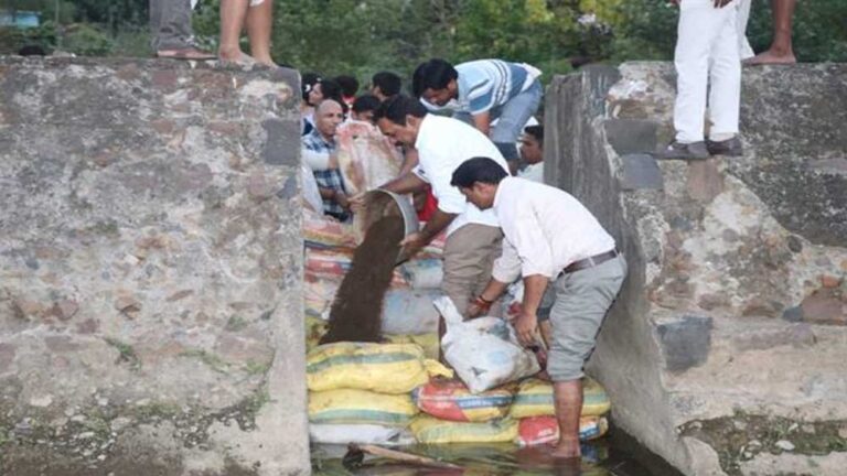 शहडोल जिले के मुड़ना नदी में ग्राम जोधपुर में स्टाप डैम में बोरी बंधान से नदी का जल क्षेत्र 12 घंटे के अंदर हुआ लबालब। जल गंगा संवर्धन अभियान के तहत तहसील सोहागपुर के ग्राम जोधपुर से बहने वाली मुड़ना नदी की जलधारा सूख सी गई थी। पूर्व से बनाए गए स्टाप डैम में जन अभियान परिषद की ग्राम जोधपुर की प्रस्फुटन समिति तथा ग्राम पंचायत ने स्टाप डैम में बोरी बंधान करने का निर्णय लिया। ग्रामीणों के निर्णय से प्रभावित होकर कलेक्टर डॉ. केदार सिंह, एसडीएम सोहागपुर अरविंद शाह और जन सामान्य ने गांव में पहुंचकर श्रमदान किया। बोरी बंधान से धीरे-धीरे मुड़ना नदी के बहाव क्षेत्र में जल स्तर बढ़ने लगा जिसे देखकर ग्रामीण जन प्रसन्न हो गए। पानी भर जाने से गांव के पशु-पक्षियों को पीने का पानी तथा ग्रामीण जनों को निस्तार के लिये पानी की सुविधा उपलब्ध हो गई है।