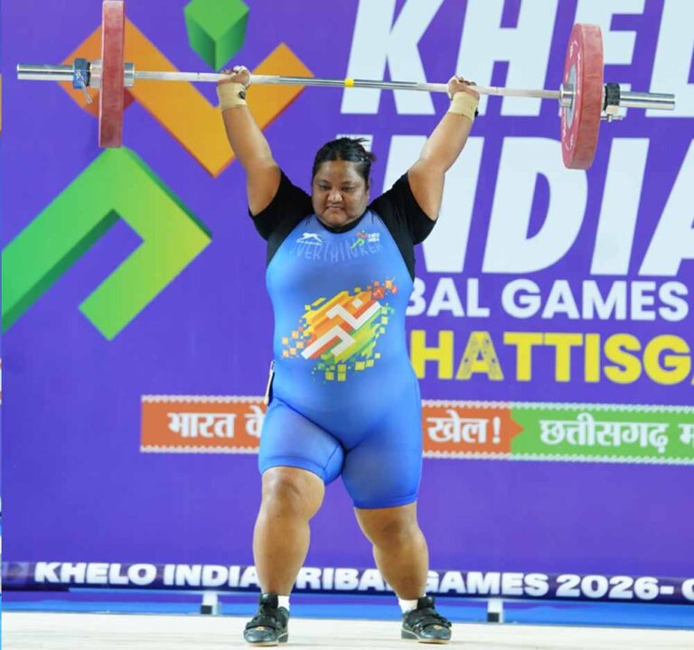खेलो इंडिया ट्राइबल गेम्स 2026 के तहत महिला 86$ किलोग्राम वेटलिफ्टिंग प्रतियोगिता में खिलाड़ियों ने शानदार प्रदर्शन करते हुए दर्शकों को रोमांचित कर दिया। इस स्पर्धा में मिजोरम की ज़ोसांगज़ुआली ने बेहतरीन खेल का प्रदर्शन कर स्वर्ण पदक अपने नाम किया। ज़ोसांगज़ुआली ने स्नैच में 70 किलोग्राम और क्लीन एंड जर्क में 83 किलोग्राम वजन उठाकर कुल 140 किलोग्राम के साथ पहला स्थान हासिल किया।