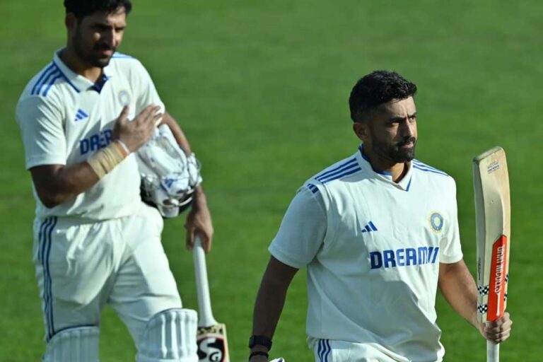 केएल राहुल ने 168 गेंदों में 15 चौके और एक छक्के की मदद से 116 रनों की पारी खेली, जबकि ध्रुव जुरेल ने 87 गेंदों में 52 रन बनाए। पिछले मैच में दोहरा शतक जड़ने वाले करुण नायर ने 71 गेंदों में 40 रन बनाए। नितीश कुमार रेड्डी के बल्ले से भी रन आए। उन्होंने 57 गेंदों में 34 रनों की पारी खेली। यशस्वी जायसवाल 17 और कप्तान अभिमन्यु ईश्वरन सिर्फ 11 रन बना सके। ईश्वरन टेस्ट टीम के लिए डेब्यू करने के अपने दावे को कमजोर कर रहे हैं। पिछले मैच में भी उन्होंने पहली पारी में रन नहीं बनाए थे। हालांकि, दूसरी पारी में जरूर उनके बल्ले से 68 रन आए थे।