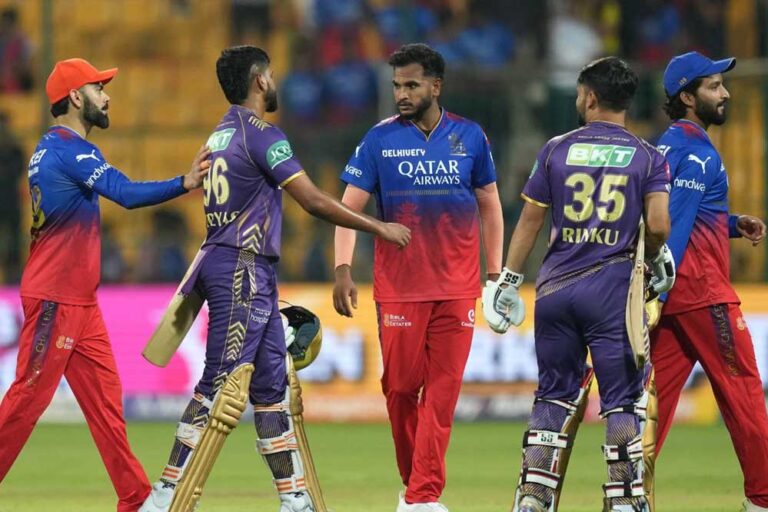 इंडियन प्रीमियर लीग (IPL) 2025 फिर से पटरी पर लौट रहा है. भारत-पाकिस्तान के बीच तनाव के चलते इस लीग को एक हफ्ते के लिए स्थगित करना पड़ा था. अब शनिवार (17 मई) को रॉयल चैलेंजर्स बेंगलुरु (RCB) और कोलकाता नाइटराइडर्स (RCB) के बीच होने वाले मुकाबले से आईपीएल 2025 की दोबारा शुरुआत होगी. बेंगलुरु-कोलकाता का यह मुकाबला भारतीय समयानुसार शाम 7.30 बजे से बेंगलुरु के एम. चिन्नास्वामी स्टेडियम में खेला जाएगा.
