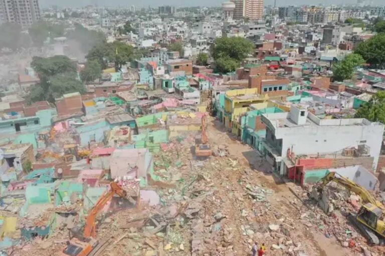 गुजरात के अहमदाबाद में चंडोला तालाब के किनारे एक साथ गरजे करीब 50 बुलडोजरों ने एक ही दिन में करीब 8500 मकानों/ढांचों को पत्थर-पत्थर कर डाला। अब कुछ धार्मिक ढांचे ही बचे हैं। पुलिस का कहना है कि इन्हें सम्मान के साथ हटाया जाएगा। अहमदाबाद नगर निगम ने अवैध अतिक्रमण को हटाकर 2.5 लाख वर्ग मीटर जमीन खाली कराई है।