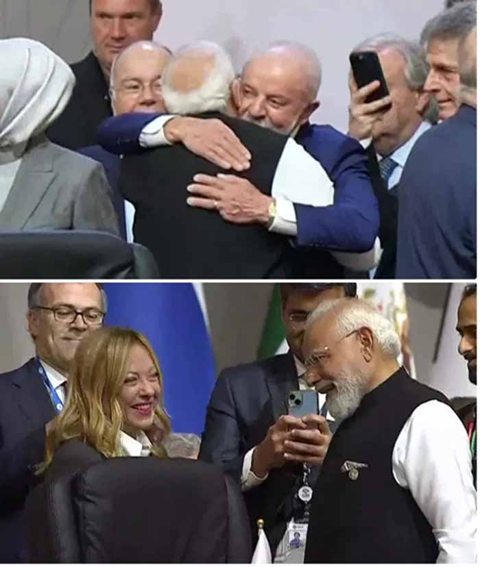 प्रधानमंत्री नरेंद्र मोदी ने जोहानिसबर्ग में चल रहे जी20 शिखर सम्मेलन के दौरान इटली की प्रधानमंत्री जॉर्जिया मेलोनी से मुलाकात की। दोनों नेताओं ने बहुपक्षीय विचार-विमर्श में भाग लेते हुए विभिन्न मुद्दों पर चर्चा की। साथ ही भारत-इटली के मजबूत संबंधों में प्रगाढ़ता पर संतोष जाहिर किया। मुलाकात में दोनों ने रक्षा, सुरक्षा, व्यापार, प्रौद्योगिकी और स्वच्छ ऊर्जा जैसे क्षेत्रों में सहयोग बढ़ाने पर जोर दिया। इसके साथ ही उन्होंने ब्राजील के राष्ट्रपति लूला डि सिल्वा के साथ भी मुलाकात करते नजर आए। में मुलाकात के दौरान मोदी ने ब्राजील के राष्ट्रपति लूला को गले लगाया। राष्ट्रपति लूला मोदी की पीठ थपथपाते नजर आए। पीएम मोदी शिखर सम्मलेन के पहले दिन कई देशों के प्रमुखों के साथ बातचीत करते दिखे।