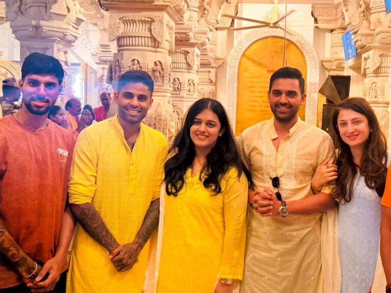 मुंबई इंडियंस के खिलाड़ी सूर्यकुमार यादव, दीपक चहर, तिलक वर्मा और करण शर्मा ने अयोध्या में रामलला के दर्शन कर रामलला के आशीर्वाद लिए. इसके बाद सपत्नी सूर्यकुमार यादव ने हनुमानगढ़ी पर पूजा और दर्शन किया. इस दौरान हनुमानगढी के मुख्य पुजारी हेमंत दास ने पूजा कराई.