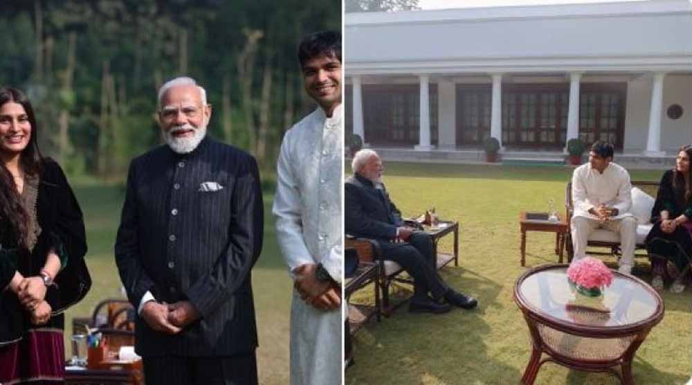 प्रधानमंत्री मोदी ने सोशल मीडिया प्लेटफॉर्म ‘एक्स’ पर इस मुलाकात की जानकारी साझा की। उन्होंने लिखा कि 7 लोक कल्याण मार्ग पर नीरज चोपड़ा और उनकी पत्नी हिमानी मोर से मुलाकात हुई, जहां खेल समेत कई विषयों पर सार्थक बातचीत हुई।
