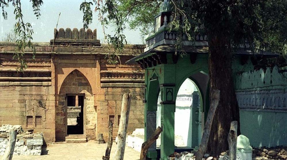 परिसर में स्थित मकबरे के प्रवेश द्वार पर लगे शिलालेख का उल्लेख रिपोर्ट के खंड चार, पृष्ठ 260 पर किया गया है। यह शिलालेख मालवा सल्तनत के शासक महमूद खिलजी के काल (हिजरी 859/1455 ईस्वी) का है। एएसआई द्वारा किए गए अनुवाद के अनुसार उसमें उल्लेख है कि एक पुराने आश्रम को ध्वस्त कर मूर्तियों को नष्ट किया गया और उसे नमाज की जगह में परिवर्तित किया गया। इस संदर्भ में उल्लेखित है कि रिपोर्ट इस अभिलेख को ऐतिहासिक परिवर्तन का प्रत्यक्ष साक्ष्य मानती है।